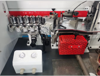 切斷板材兩頭的多余封邊帶(氣缸帶2個調(diào)壓閥1個泄壓閥)氣壓更穩(wěn)定,齊頭齊尾更穩(wěn)定 |