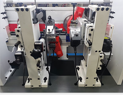 6輪壓貼貼合比4輪更精密,膠線輕微不跑帶,貼合牢靠,厚薄木皮均可輕松走帶,氣缸控制開關(guān)膠門,膠量穩(wěn)定,厚薄均勻。 |