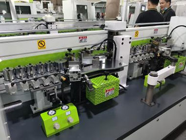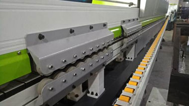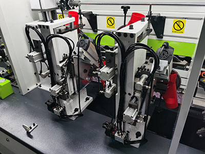 切斷板材兩頭的多余封邊帶(氣缸帶2個(gè)調(diào)壓閥1個(gè)泄壓閥)氣壓更穩(wěn)定,齊頭齊尾更穩(wěn)定. |