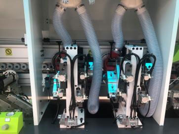 切斷板材兩頭的多余封邊帶(氣缸帶2個調(diào)壓閥1個泄壓閥)氣壓更穩(wěn)定,齊頭齊尾更穩(wěn)定 |