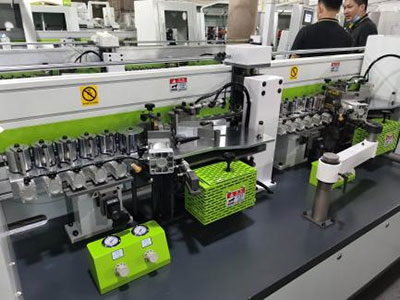 切斷板材兩頭的多余封邊帶(氣缸帶2個調(diào)壓閥1個泄壓閥)氣壓更穩(wěn)定,齊頭齊尾更穩(wěn)定 |