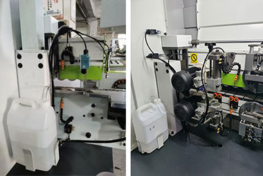 切斷板材兩頭的多余封邊帶(氣缸帶2個(gè)調(diào)壓閥1個(gè)泄壓閥)氣壓更穩(wěn)定,齊頭齊尾更穩(wěn)定. |