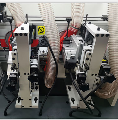 金剛石預(yù)銑刀銑去木板螺旋修邊刀的波紋痕跡和多余的毛刺,使板邊更貼合封邊條,粘接更牢固,更美觀(guān)。氣動(dòng)控制的預(yù)銑座,更精確,操控更方便。 |