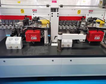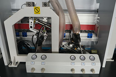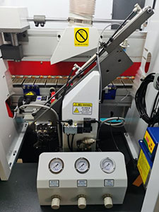 切斷板材兩頭的多余封邊帶(氣缸帶2個調(diào)壓閥1個泄壓閥)氣壓更穩(wěn)定,齊頭齊尾更穩(wěn)定. |